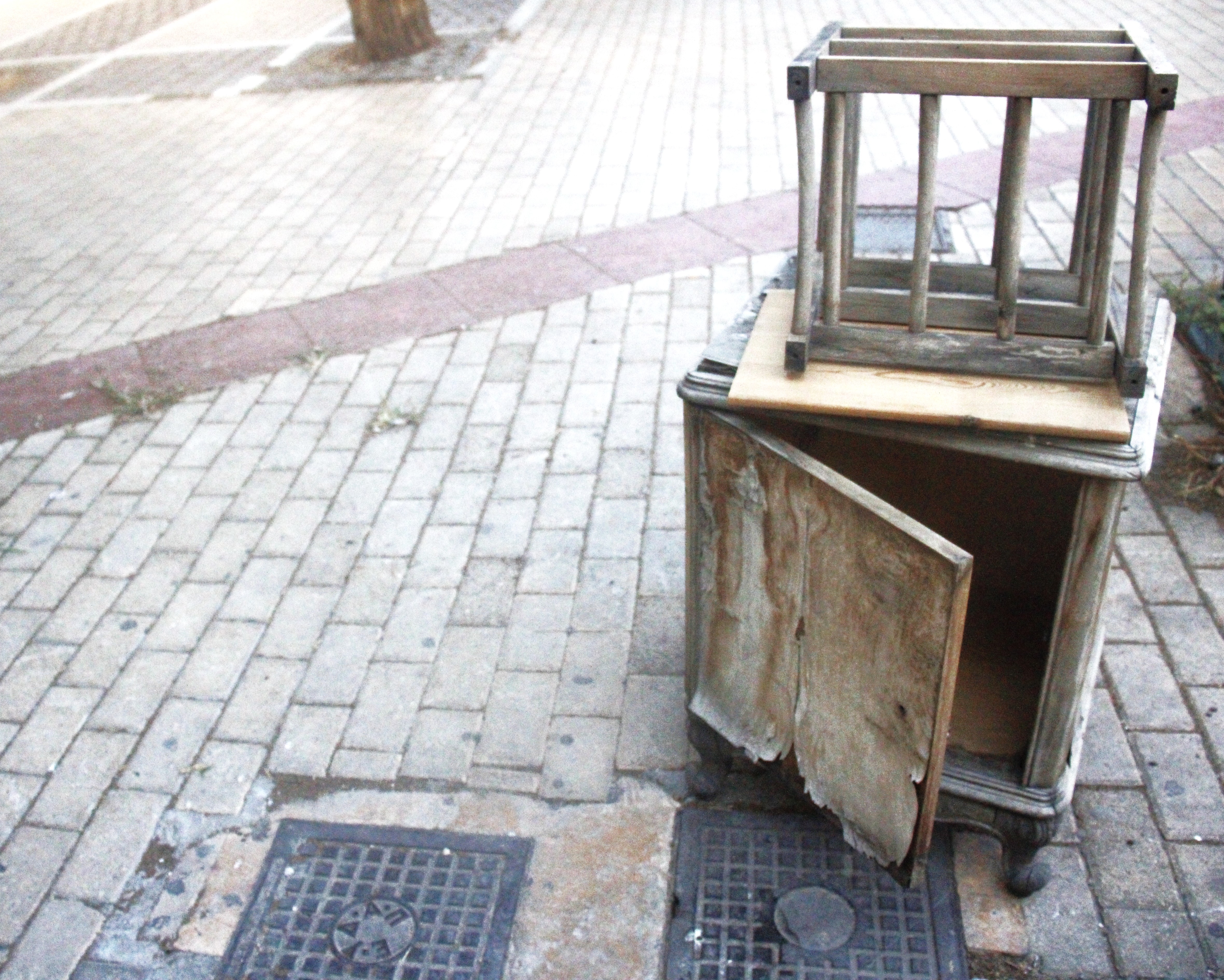 Αυτό το παλιωμένο κομοδίνο στην μέση του πεζόδρομου μπροστά απ’ την