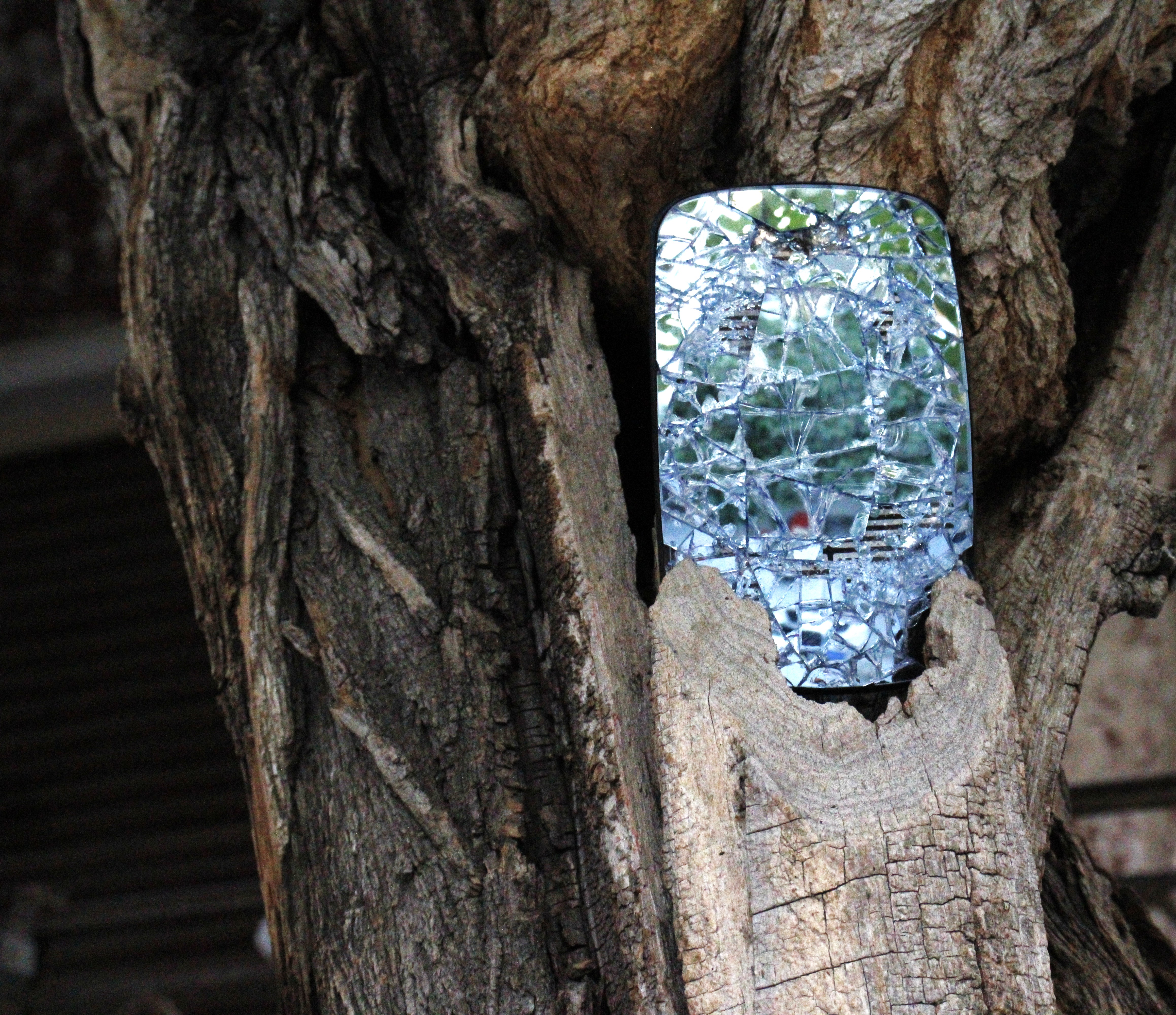 μπήξω τον καθρέφτη εντός του, τον κορμό ενός δέντρου και μια εσοχή σ’ αυτό