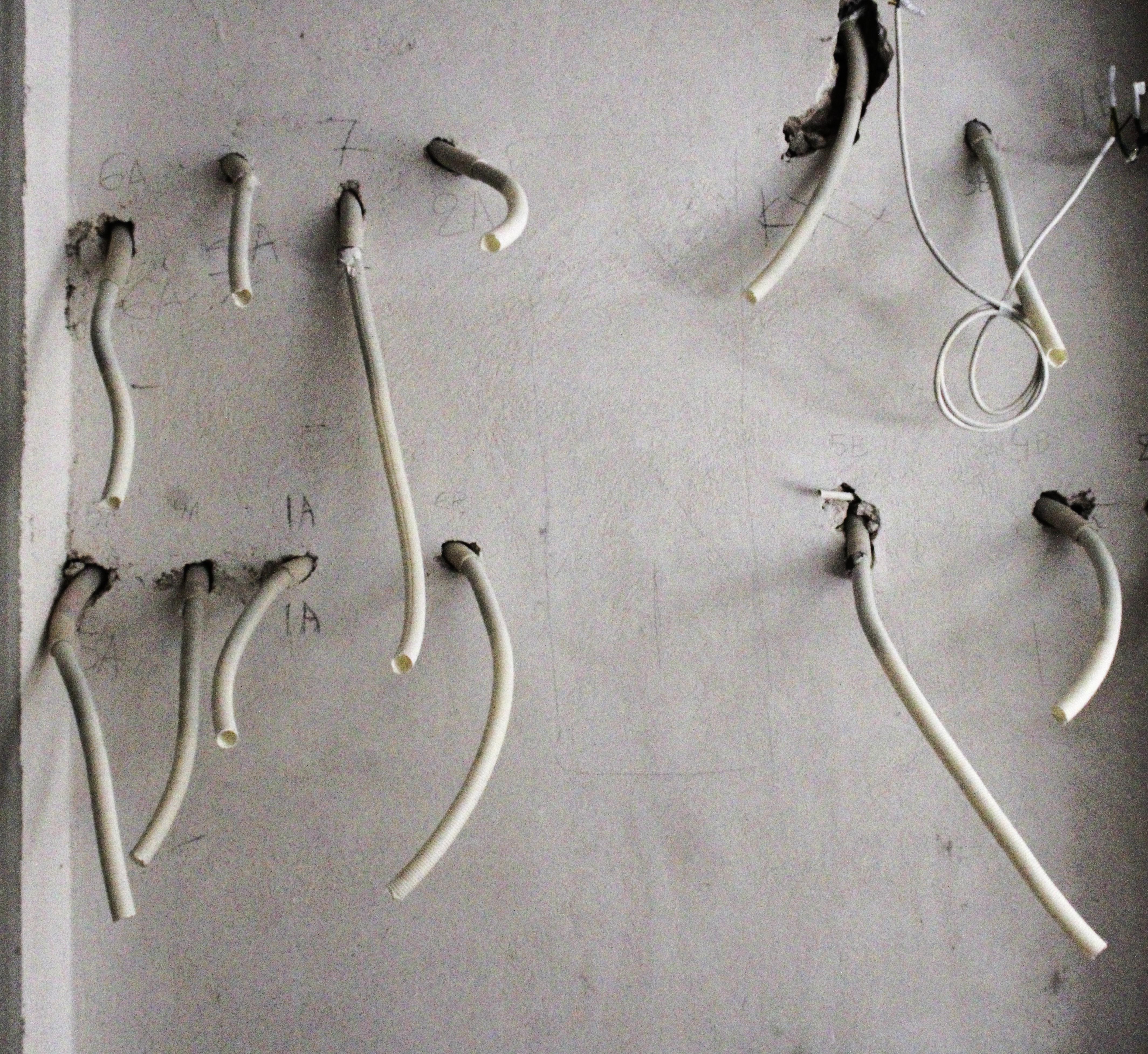 σιδεριές πίσω από διαρρηγμένα τσιμέντα, στραπατσαρισμένοι σωλήνες. Είναι πολλές