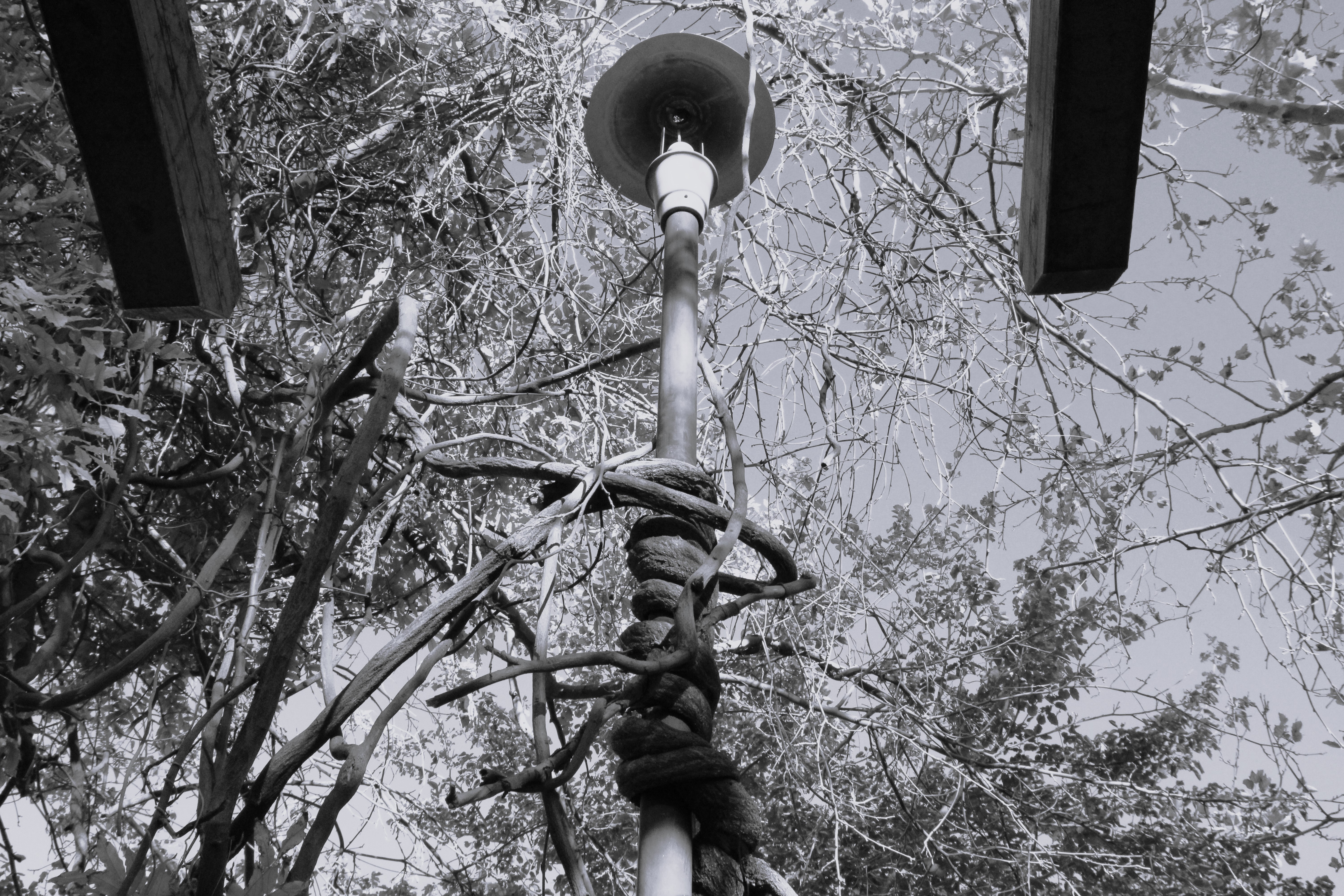 πάνω στον στύλο του φωτιστικού με μανία και ηχηρούς κραδασμούς έδινε ένταση στο