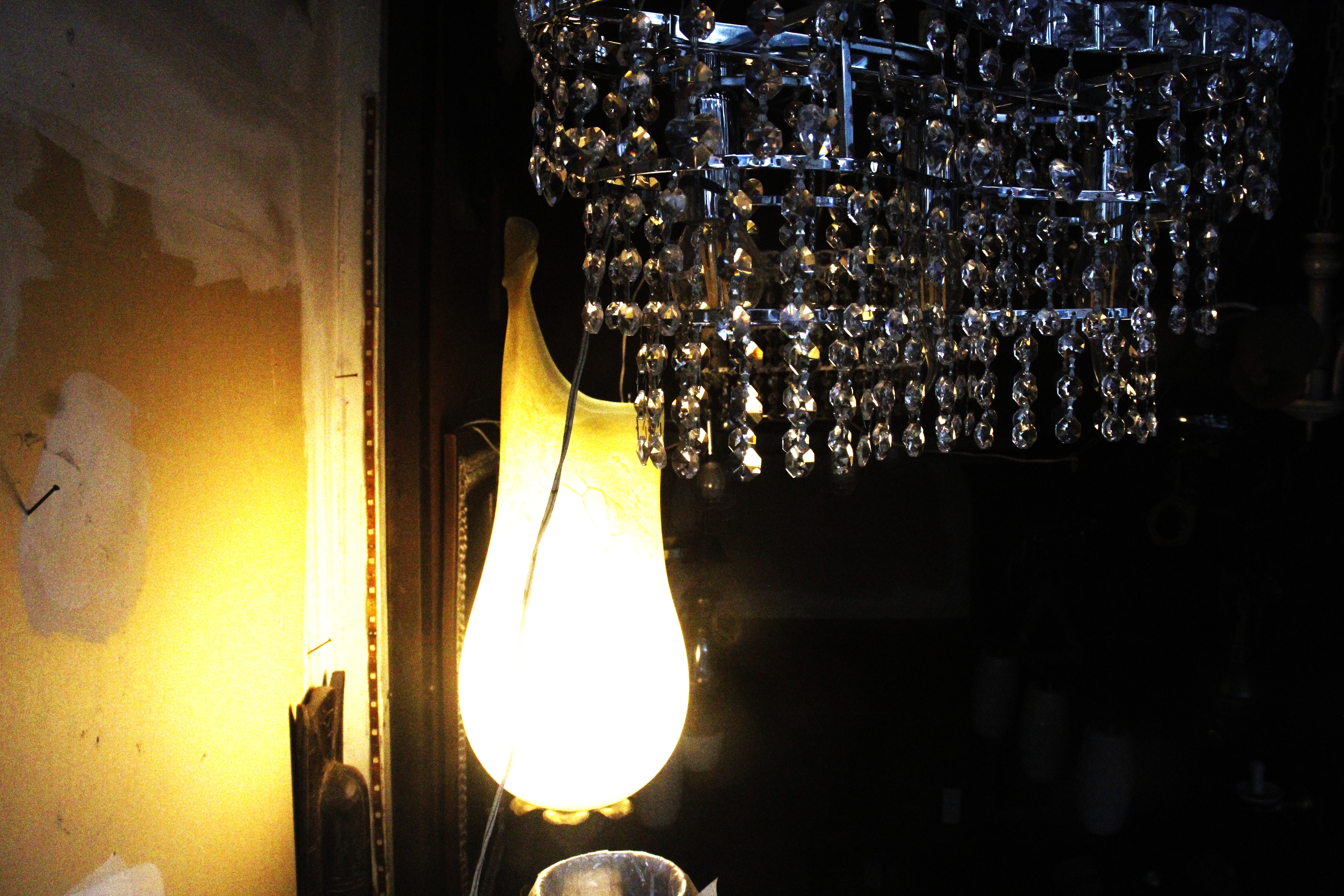 κρύσταλλα δίπλα σ’ ένα φωτιστικό τύπου απ’ αυτά που φτιάχνονται στην Βενετία.