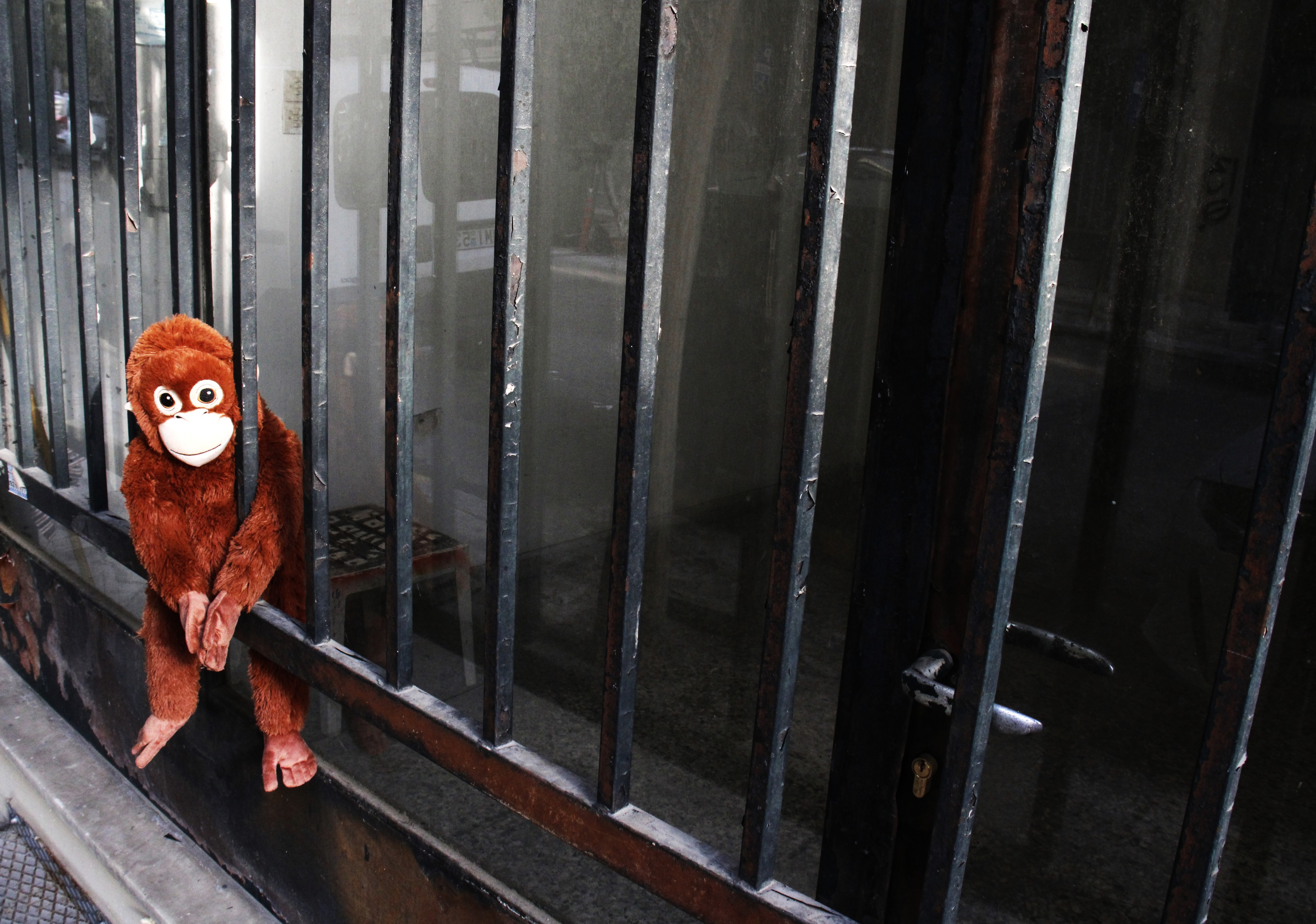 Βρήκα αυτό τον μικρό χιμπατζή στην κορυφή ενός κάδου απορριμμάτων, πάνω ακριβώς